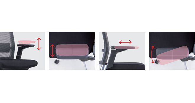 ปรับได้ 4 วิธี เพื่อตอบสนองอิริยาบถต่างๆ เบาะที่มีความยืดหยุ่นเพื่อลดภาระของแขนและเพิ่มความสบาย