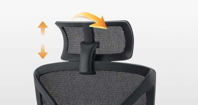 C- พนักพิงศีรษะที่มีรูปทรงได้รับการออกแบบตามหลักสรีรศาสตร์ พร้อมการปรับความสูงได้ 5 ซม. และการหมุนได้ 45°