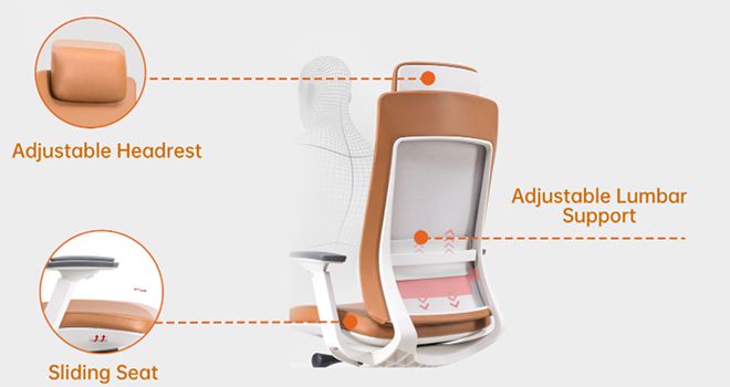 พนักพิงศีรษะแบบปรับได้ รองรับเอวแบบปรับได้ เบาะเลื่อน