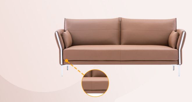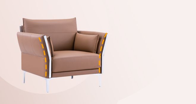 ดีไซน์แบบฝังโลหะใช้ในพนักพิงและที่วางแขน การซ้อนทับของโลหะและหนังช่วยปรับปรุงการตกแต่งและการใช้งานจริง อีกทั้งยังสามารถจับคู่และนำไปใช้ได้ง่ายในหลายสถานการณ์