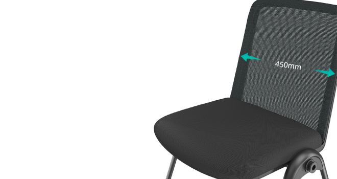 ด้านหลังแบบตาข่ายกว้าง 450 มม. การรองรับอย่างมีสไตล์ และการป้องกันเอวที่แข็งแกร่ง